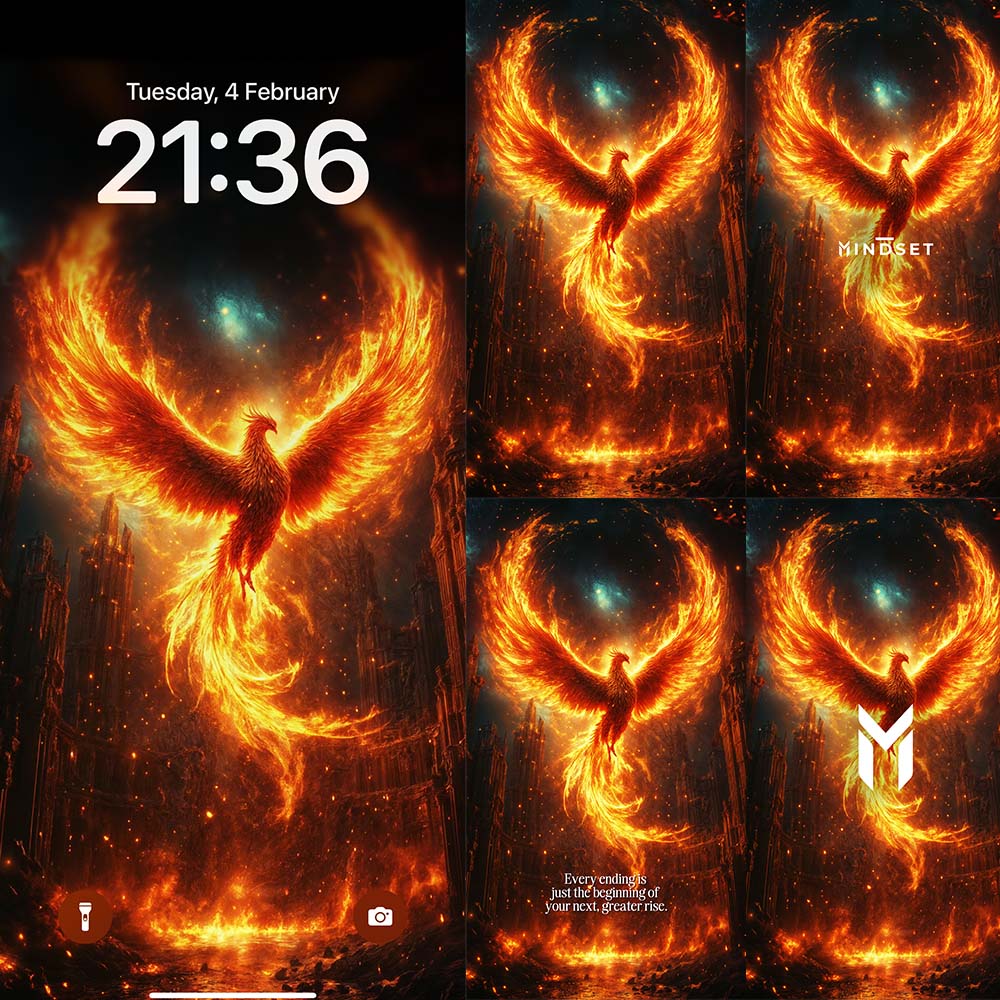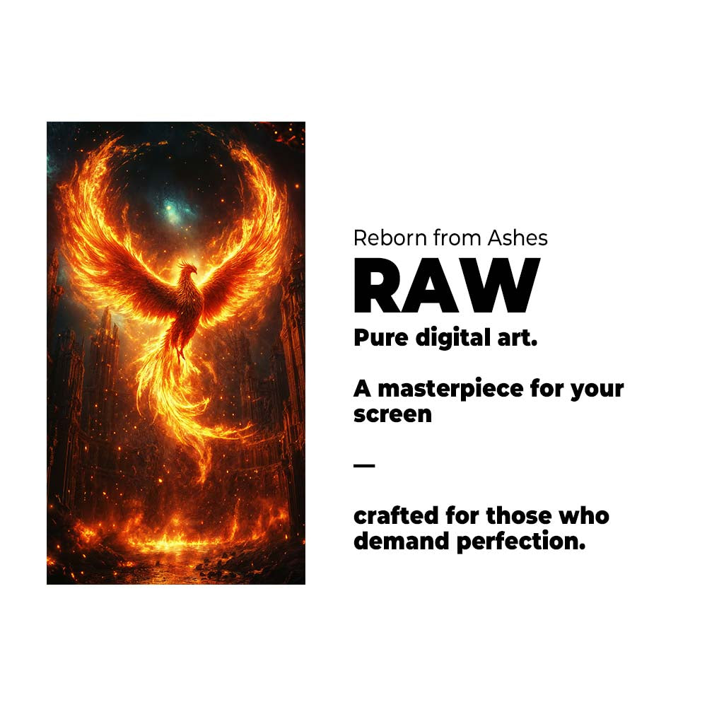 Transform your space and mindset with the awe-inspiring energy of “Reborn from Ashes.” This is more than a wallpaper—it’s a beacon of hope, resilience, and the promise of greater beginnings. Let this stunning artwork ignite your drive to rise above and create your next, most extraordinary chapter.