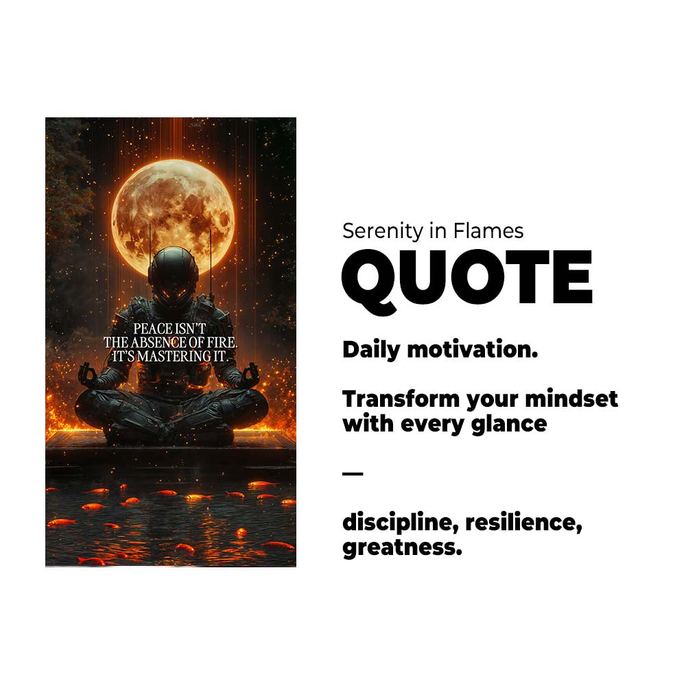 “Serenity in Flames” captures this philosophy perfectly. The artwork reflects the quiet strength that comes from standing firm in the face of chaos and transforming it into a source of power. It’s a daily reminder to find balance, channel resilience, and embrace the flames as a catalyst for growth. Every time you look at this piece, you’ll be reminded of the power you hold to turn adversity into clarity.