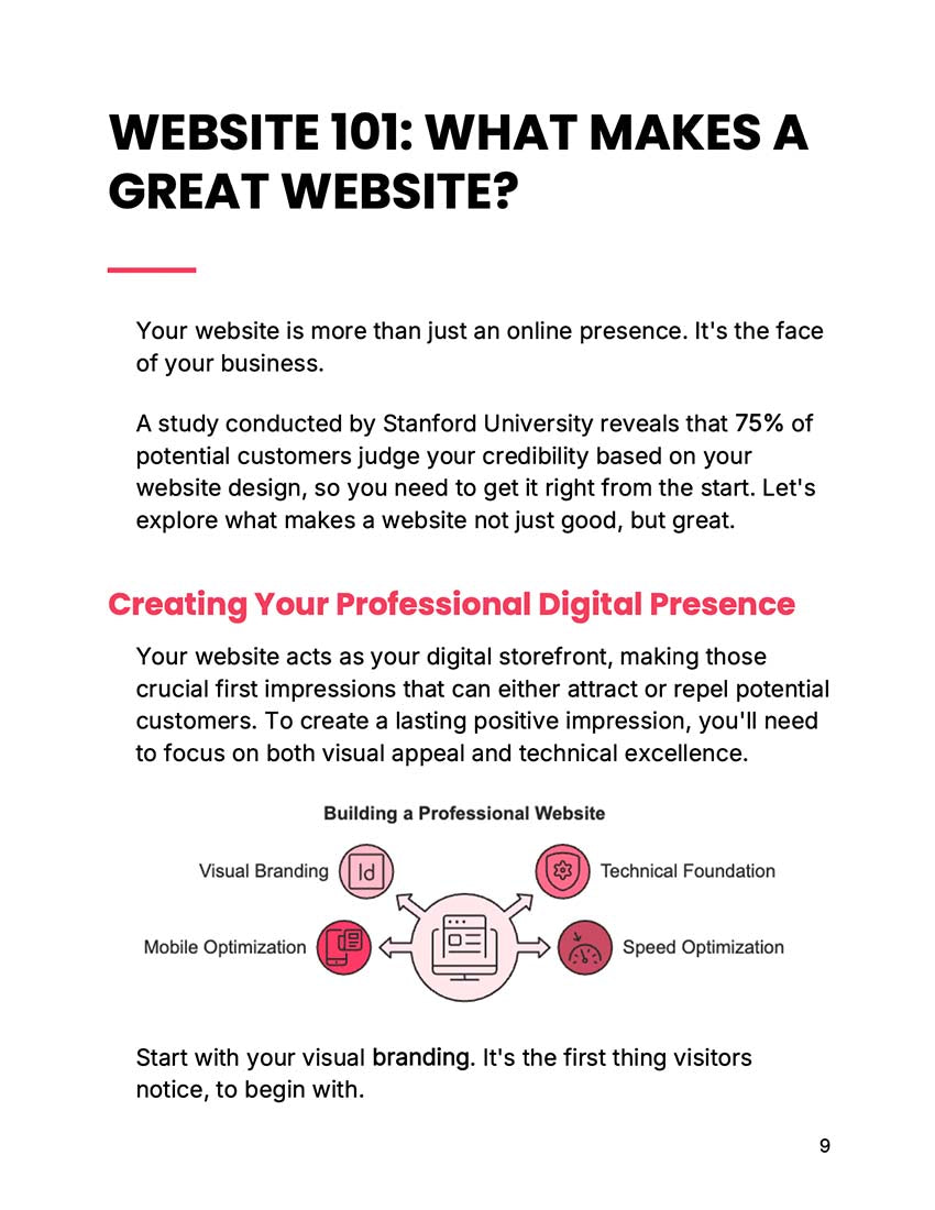 “How to Make Websites that Work” is your essential guide to building a professional website - no coding degree or mega-budget required. If you’ve ever felt intimidated by technical jargon or endless platform choices, this ebook cuts through the chaos with step-by-step strategies that work in the real world.
