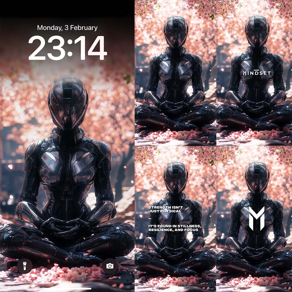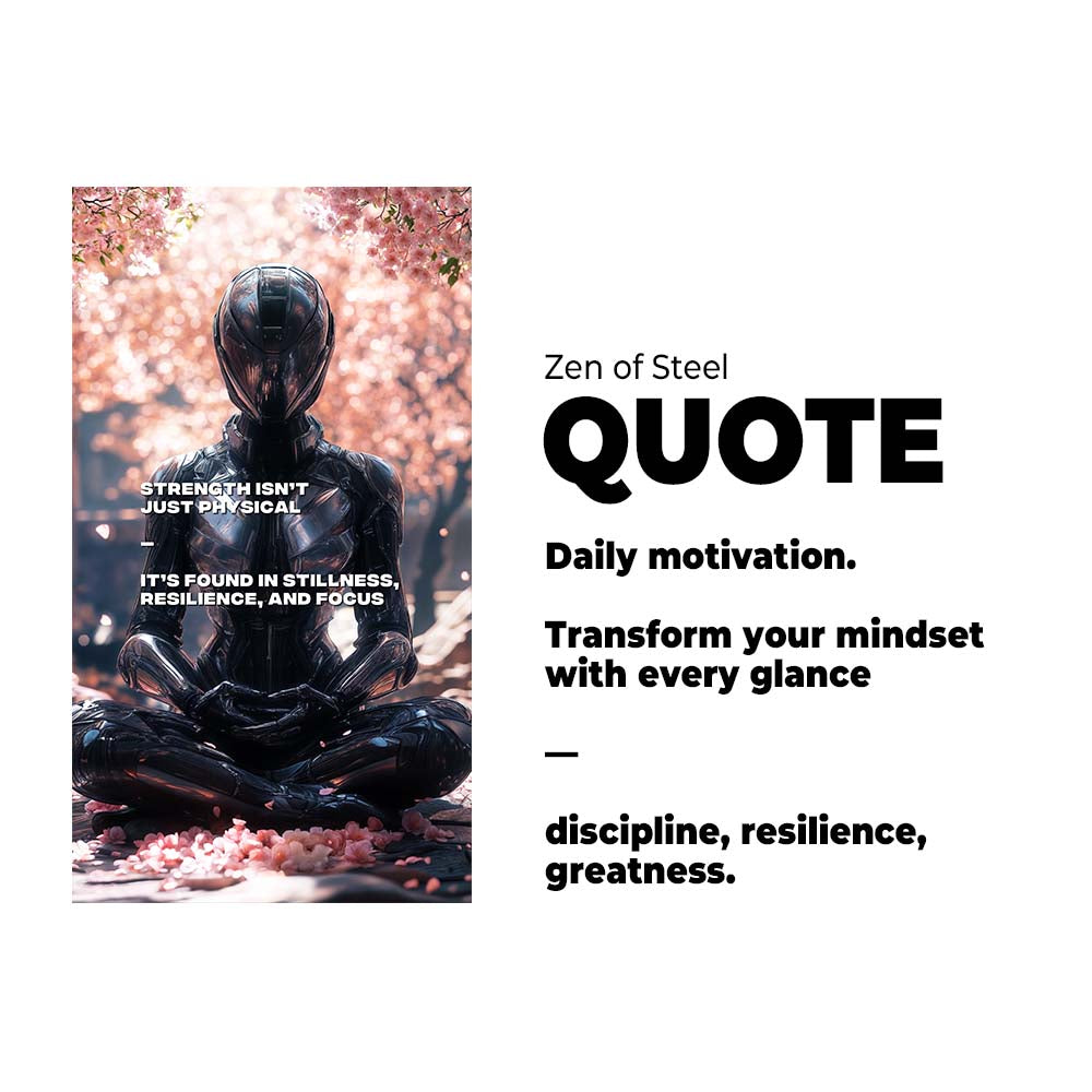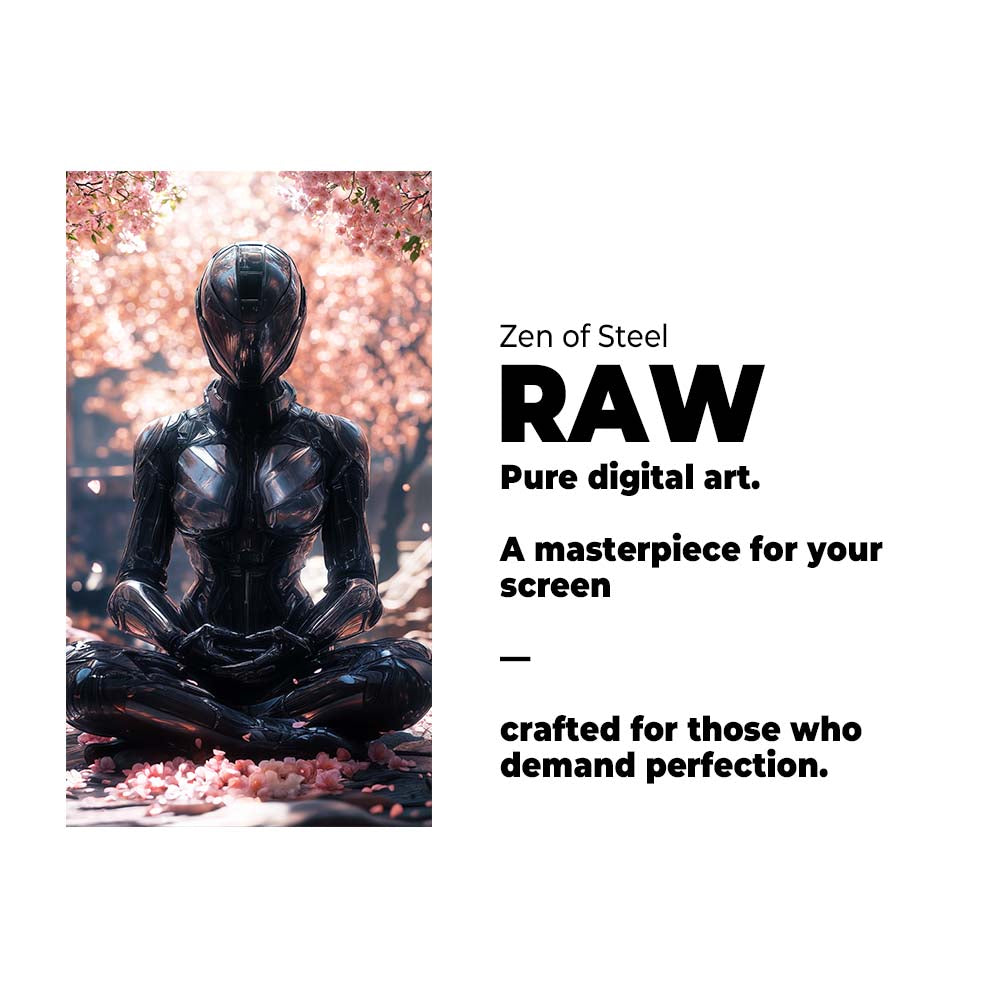 Transform your space and mindset with this stunning piece of digital art. “Zen of Steel” is more than a wallpaper—it’s a daily source of inspiration and alignment, a piece of the future delivered to you now. Own this masterpiece and let it guide your journey of resilience and focus.